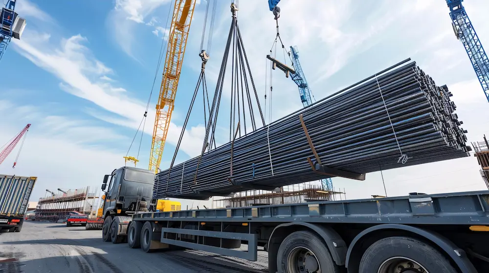 Reinforced steel bars used in construction for structural integrity and strength.